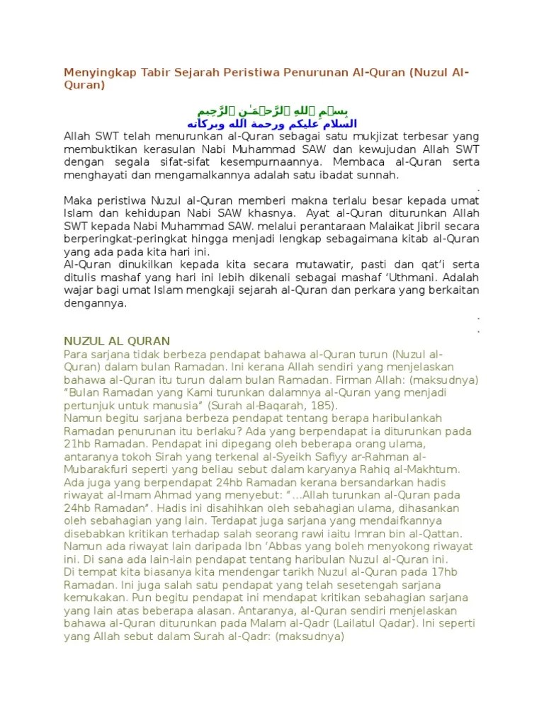 Peringkat penurunan al quran sambutan penurunan al quran yang biasa disebut sebagai nuzul al quran sesuatu yang tidak asing dari masyarakat .